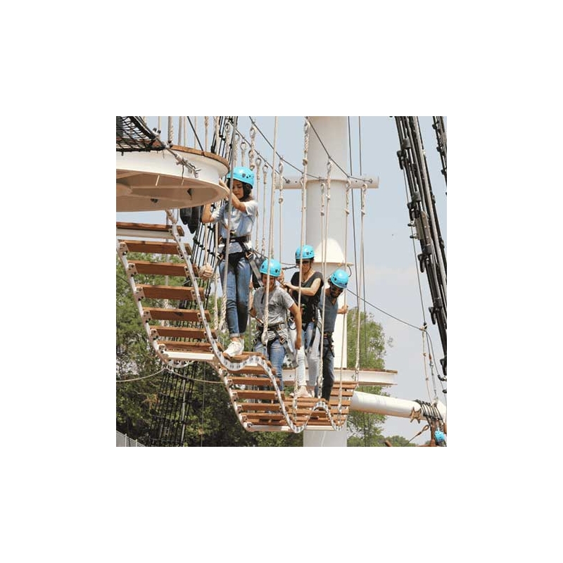 Cet accrobranche (à partir de 6 ans conseillé), en réplique de bateau, vous propose d'escalader les cordages, de grimper dans les haubans, de virevolter de mât et mât et de glisser sur les tyroliennes jusqu’à 30 mètres de hauteur !