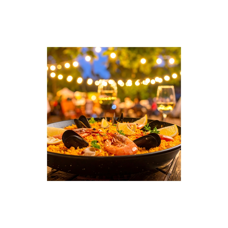L’espace d’un soir, laissez-vous transporter de l’autre côté des Pyrénées : tapas savoureuses, paëlla généreuse préparée dans la plus pure tradition et ambiance chaleureuse seront au rendez-vous. La soirée sera rythmée par des musiques latines qui apporteront une touche festive et entraîneront même les plus timides sur la piste !